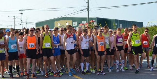 Everything else went off without a hitch. After the traditional 'Ode to Newfoundland' was sung, the race began promptly at 8 am. Volunteers handing out water were much appreciated in one of the warmer/sunnier Telys in recent memory. Slight breeze to our backs also meant excuses were scarce. The course was clearly marked, lots of spectators, and no traffic issues thanks to good policing of the intersections. As Matt Loiselle said after winning in 48:08 "A lot of courses, even in Toronto, you’re running and you’re hearing the crickets chirping. Not here". Very true. Even the first few miles were lined with onlookers. It helps when a city collectively favours a race; it means few people complain about roads closed to traffic (except for this comically cranky comment posted at end of the a Telegram article).